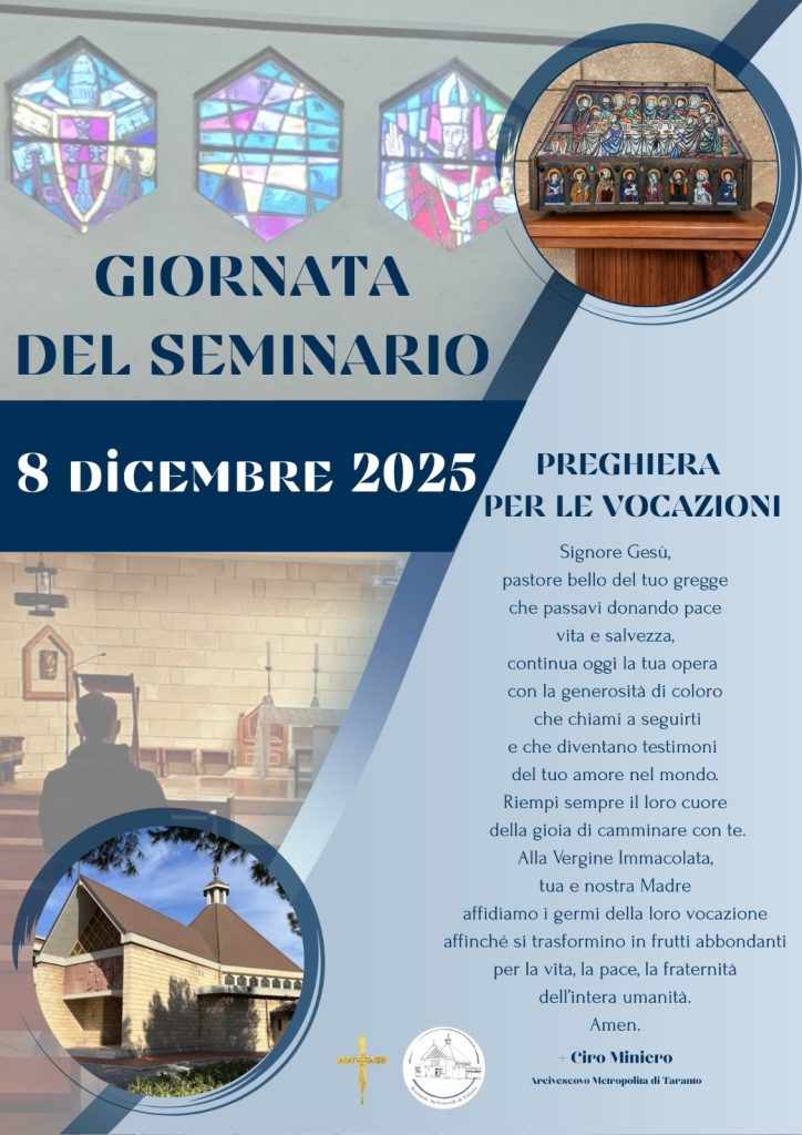 L’8 dicembre, nella solennità dell’Immacolata Concezione, la nostra diocesi si unisce in preghiera e sostegno per la ‘Giornata del Seminario’, appuntamento annuale dedicato alla vicinanza ai seminaristi e alla promozione di una cultura vocazionale all’interno della comunità ecclesiale.