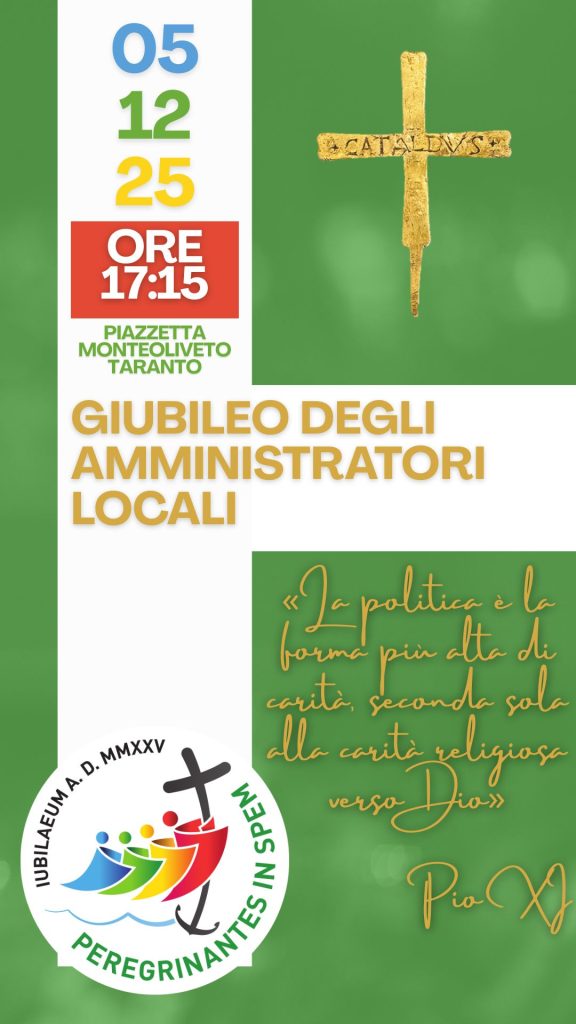 Nella lettera d’invito, don Antonio Panico, direttore dell’Ufficio di pastorale sociale, lavoro, giustizia, pace e custodia del Creato, scrive che “Il Giubileo, dedicato al tema della Speranza, è l’occasione migliore per credenti e non credenti, soprattutto in questi tempi difficili, per riscoprirsi comunità e per mettere al centro dell’opera di ciascuno, in ogni ambito di vita, la ricerca del Bene comune, di tutto l’uomo e di tutti gli uomini. La politica che, come ha affermato san Paolo VI, è la forma più eminente di servizio al Bene comune, ha la responsabilità di guidare le comunità verso un futuro di speranza, seminando già nell’oggi azioni concrete che le diano gambe e respiro”.