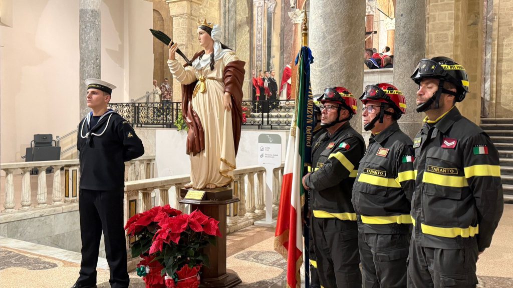 Giovedì mattina, 4 dicembre, nella basilica cattedrale di San Cataldo l’arcivescovo mons. Ciro Miniero ha presieduto la celebrazione eucaristica per la ricorrenza di Santa Barbara, patrona della Marina Militare e dei Vigili del fuoco. Assieme all’arcivescovo hanno concelebrato il parroco della cattedrale mons. Emanuele Ferro, il cerimoniere don Marco Peluso, il cappellano del Castello aragonese, don Pasquale Di Donna, i vari cappellani militari e il diacono don Antonello Bruno.