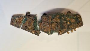 Venti circa gli oggetti in esposizione e in attesa di ulteriori studi analitici e approfondimenti. Tra di essi una pregevole pittura parietale con scene forse di un “simposio”, fibule (325 – 300 a.C. e IV e II sec. a.C.), anelli (VI sec. a.C.), ornamenti in bronzo con innesti in oro, rilievi in terracotta e pietra tenera e addirittura un falso accertato, ovvero una riproduzione di epichysis (piccola brocca) apula nello stile “di Gnatia”. Ecuperati dal Comando Carabinieri TPC”, assegnati dal Mic al Museo archeologico nazionale di Taranto, come museo di riferimento per l’analisi e lo studio di tali reperti, ma anche il Metropolitan Museum di New York che in un costante rapporto di diplomazia culturale negli ultimi anni non solo ha rivisto il suo sistema di acquisizioni ma ha cooperato pienamente per far si che questi reperti tornassero a casa.
