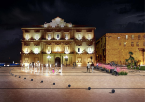 Spiccano, di fronte a Palazzo di città, i giochi d’acqua ai quali si augurano un destino migliore rispetto a quelli realizzati una ventina d’anni fa sull’affaccio a Mar Grande, sugli spalti sottostanti la Ringhiera.