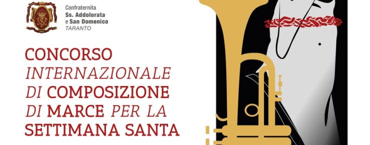 Anche quest’anno la confraternita Maria SS. Addolorata e S. Domenico ha bandito il concorso internazionale di marce funebri per la Settimana Santa ‘Trofeo Città di Taranto’, per favorire la promozione e la divulgazione di questo genere musicale legato ai riti della Settimana Santa, con lo scopo di incrementare il già nutrito repertorio tarantino. Le iscrizioni sono aperte a tutti i compositori di qualsiasi nazionalità, senza limiti di età che possono presentare un solo brano che deve essere inedito, mai eseguito e non aver ricevuto premi o segnalazioni in altri concorsi, pena la squalifica. Le composizioni dovranno essere attinenti al contesto storico, religioso e tradizionale del luogo e del repertorio già esistente nei riti della Settimana Santa a Taranto. Sarà determinante, ai fini della selezione e della premiazione, la fattiva eseguibilità in forma itinerante e/o processionale.