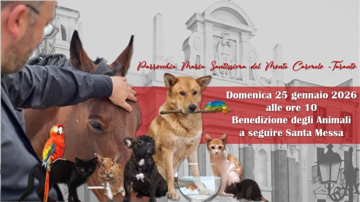 Domenica 25 gennaio, alle ore 10, nella chiesa della Madonna del Carmine di Taranto il parroco mons. Marco Gerardo impartirà la benedizione agli animali domestici.