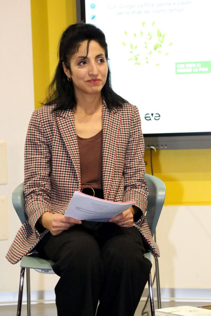 Adulti e giovani si sono lasciati guidare dalla profezia del ‘sindaco santo’, arricchiti dagli interventi dei relatori. Luca Micelli, curatore del libro, ha scosso le coscienze con un appello quanto mai attuale: “Continuare a parlare di La Pira significa compiere un atto di resistenza culturale e spirituale perché vuol dire opporsi con voce forte al cedere alla logica della guerra, al cinismo, all’indifferenza, alla disillusione che sembrano colonizzare la nostra realtà”. Accanto a lui, Sihem Djebbiha ricordato alcune urgenze del momento offrendo una visione accorata sulla necessità di riscoprire una politica che sappia parlare al cuore delle complessità e delle sfide del Mediterraneo