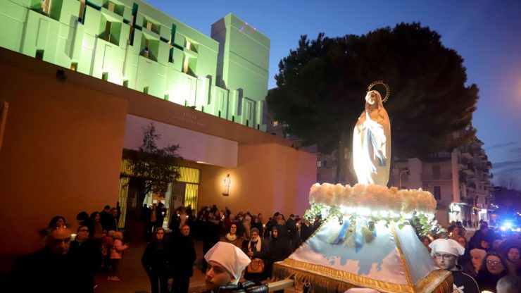 Questo il programma: precedute mezz’ora prima dalla recita del santo rosario, sante messe si terranno alle ore 8.30 – 9.30 – 11 (quest’ultima presieduta dall’arcivescovo mons. Ciro Miniero); ore 12, supplica alla Madonna di Lourdes; ore 17.30, santo rosario; ore 18, santa messa con la partecipazione della confraternita dell’Addolorata e della sottosezione di Taranto dell’Unitalsi; ore 18.45, processione aux flambeaux per corso Italia, via Campania, via Emilia, viale Liguria con rientro in chiesa.
