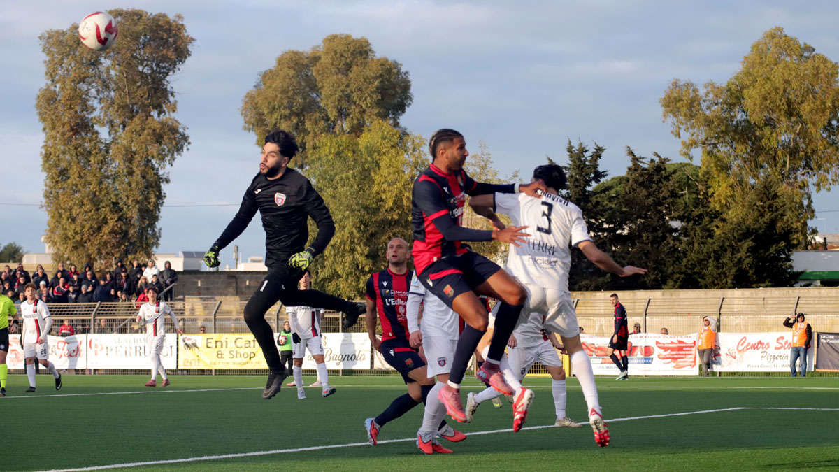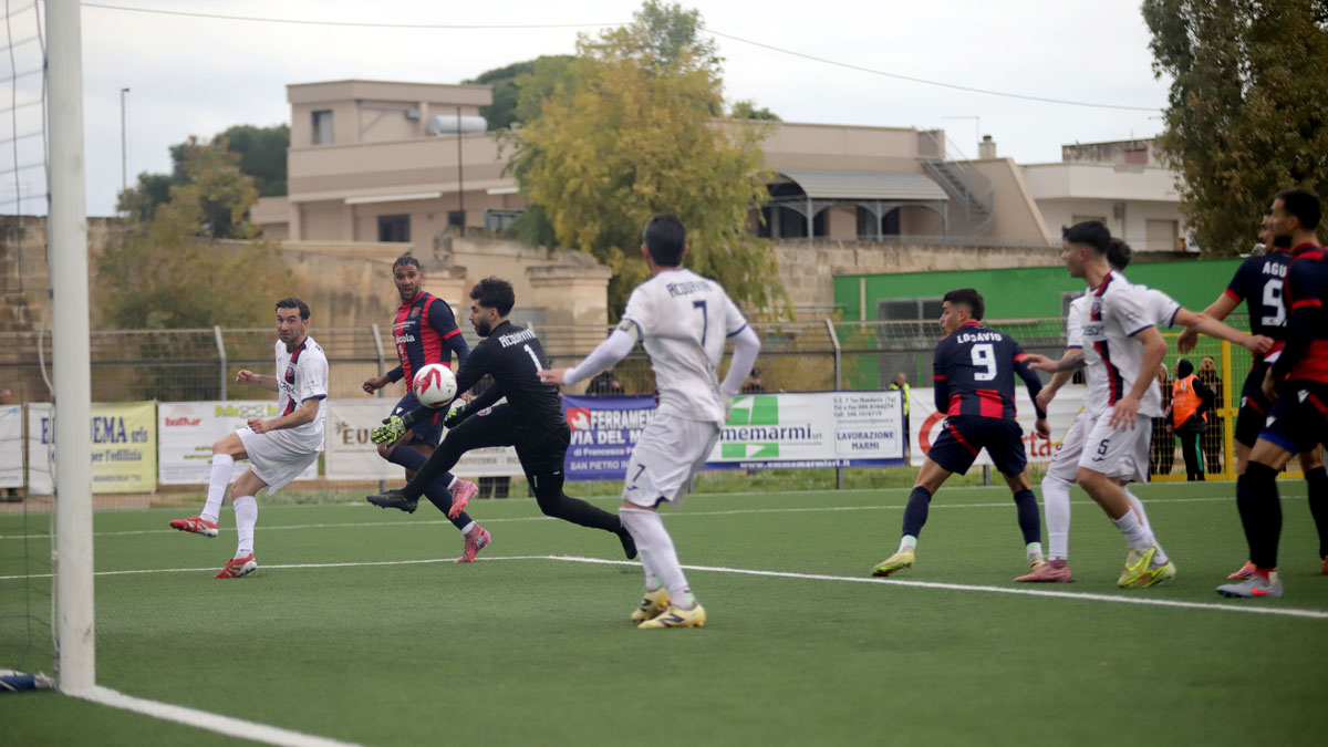 A sbloccare la partita, al minuto 58, ci pensa Guastamacchia con un preciso colpo di testa dal calcio d’angolo battuto da Alessandro Di Paolantonio. Sei minuti dopo gran tiro di Incerti e gran parata di Lorenzo Bozzi. Il Taranto sembra avere il controllo dell’incontro. Ma al 75’ arriva il clamoroso errore di Martinkus: l’estremo difensore lituano classe 2006, anziché rinviare lungo verso centrocampo, di fatto passa la palla a Rocco Girardi che segna. E il centrocampista nato a Taranto per rispetto non festeggia. Un minuto dopo gli ionici hanno la possibilità di riportarsi in vantaggio, ma Losavio su assist di Incerti, a porta spalancata, si mangia il goal. All’87’ Guglielmi di testa esalta le qualità di Martinkus che si riscatta. La squadra di mister Danucci si riversa in avanti. All’88’ imponente colpo di testa di Dramane Konate, il portiere dell’Atletico Acquaviva devia in calcio d’angolo. I minuti di recupero sono otto. Ma non succede nulla. I rossoblu escono dal campo tra i fischi dei sostenitori accorsi al “Dimitri” di Manduria, per l’indisponibilità del tradizionale impianto di casa, lo stadio “Italia” di Massafra.