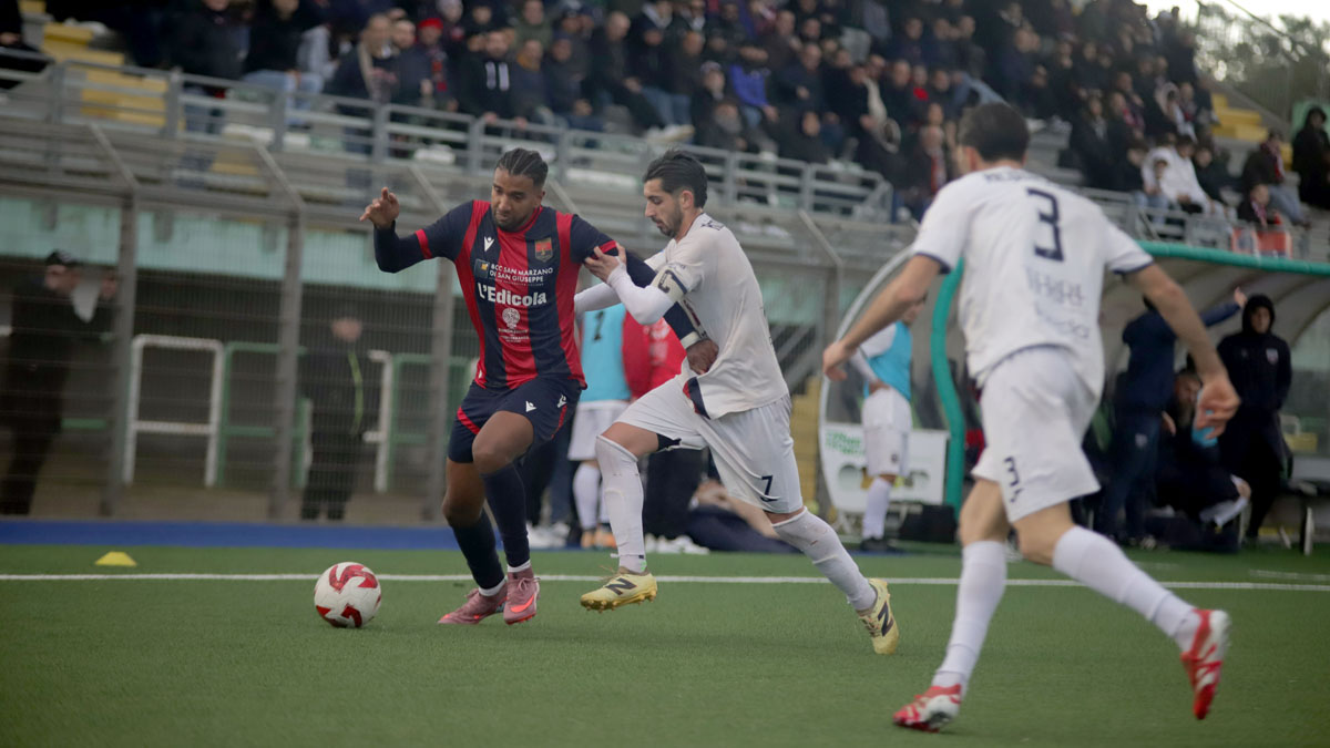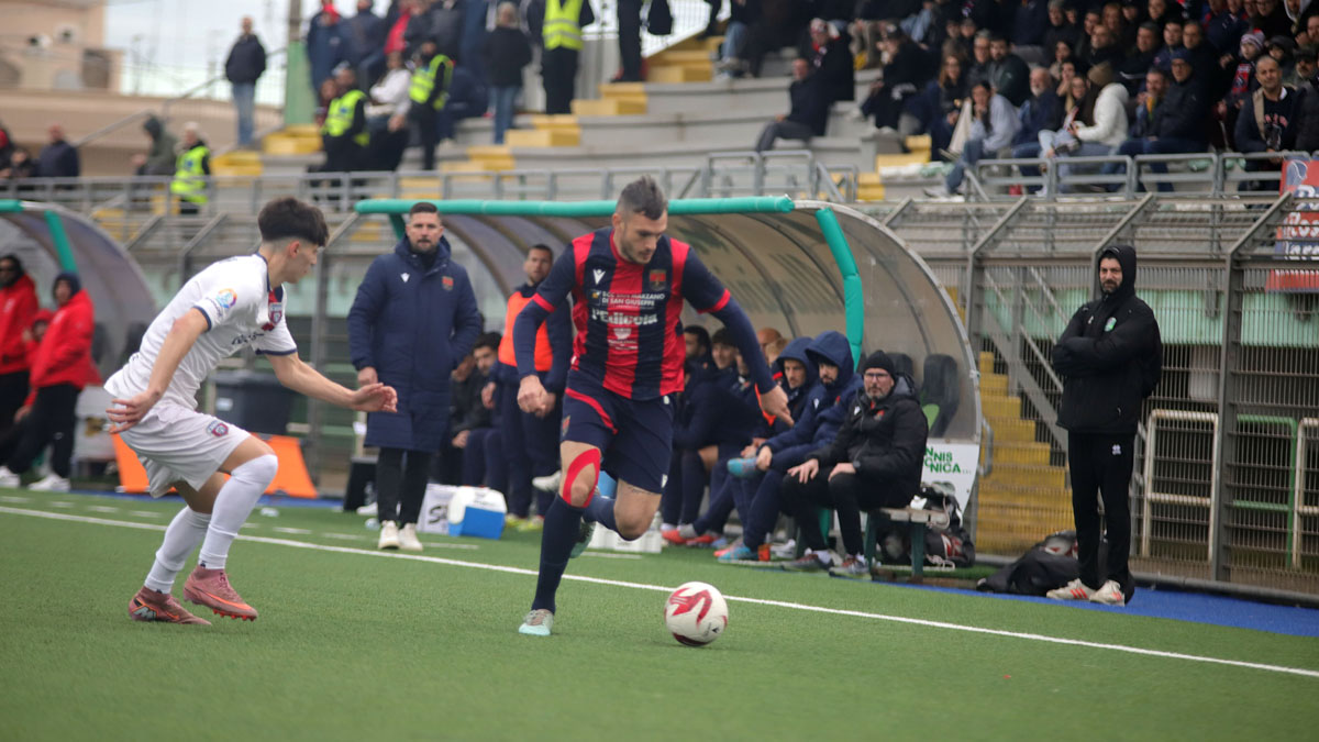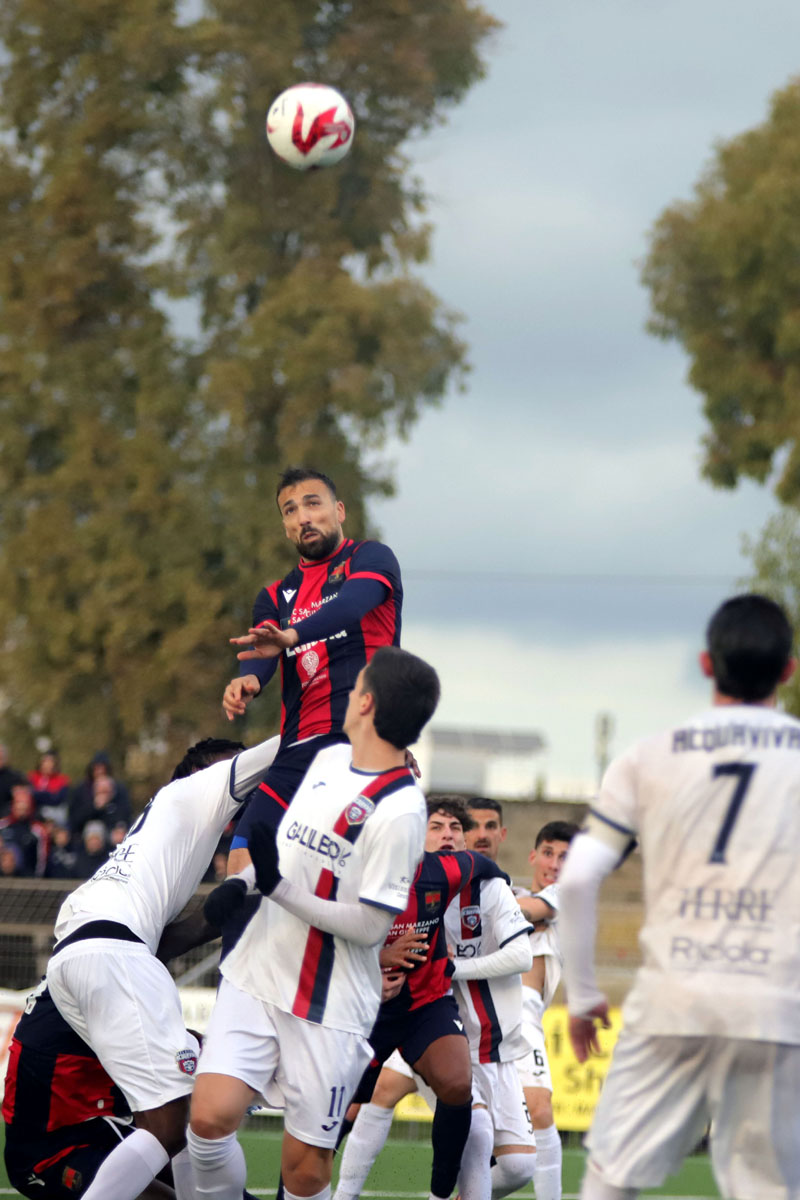 Primo tempo gradevole per l’intensità di gioco. Anche se le occasioni non fioccano: la più ghiotta arriva al 23’, dalla punizione di Davide Derosa, diagonale di Davide Incerti e salvataggio sulla linea. Al 40’ cross di Ricci per Antony Guglielmi che colpisce di testa ma trova l’opposizione di Justas Martinkus. Allo scadere la difesa dell’Atletico Acquaviva è provvidenziale nell’impedire a Francesco Losavio di andare a rete.
