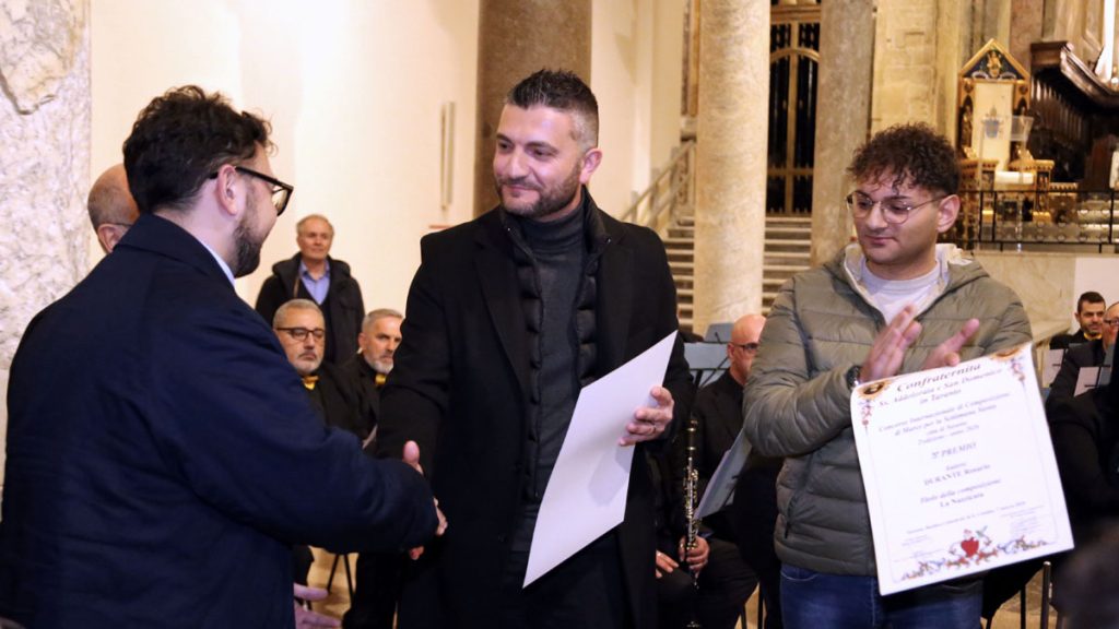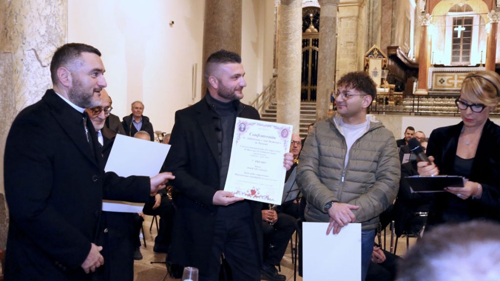 Alla fine, applausi per i cinque finalisti e il consenso da parte delle autorità presenti, fra cui il prefetto Ernesto Liguori e il consigliere provinciale Francesco Marra, e un commosso ricordo per Tonino Gigante, commissario arcivescovile delle confraternite in città vecchia, recentemente scomparso, cui è stato intitolato il premio della giuria popolare.