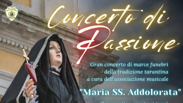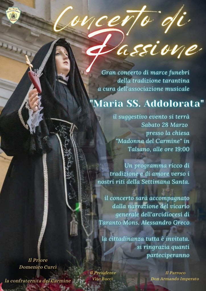 Sabato 28 marzo dal complesso bandistico talsanese Maria SS.ma Addolorata, diretto dal m° Vito Bucci.