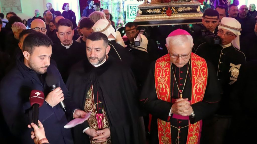 Riportiamo l’allocuzione dell’arcivescovo Ciro Miniero per l’uscita della processione della Beata Vergine Maria Addolorata pronunciata, per le avverse condizioni meteo, all’interno di San Domenico Maggiore: