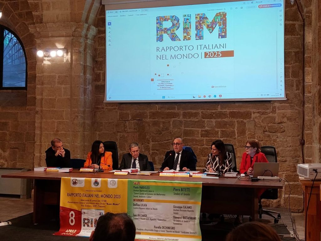 Ieri, mercoledì 8 aprile al Dipartimento jonico Università degli studi ‘Aldo Moro’, Migrantes diocesana, Fondazione Taranto25 e il Comune hanno presentato la pubblicazione realizzata da Fondazione Migrantes dal titolo ‘Rim-Rapporto italiani nel mondo 2025-speciale oltre la fuga: talenti, cervelli o braccia’.