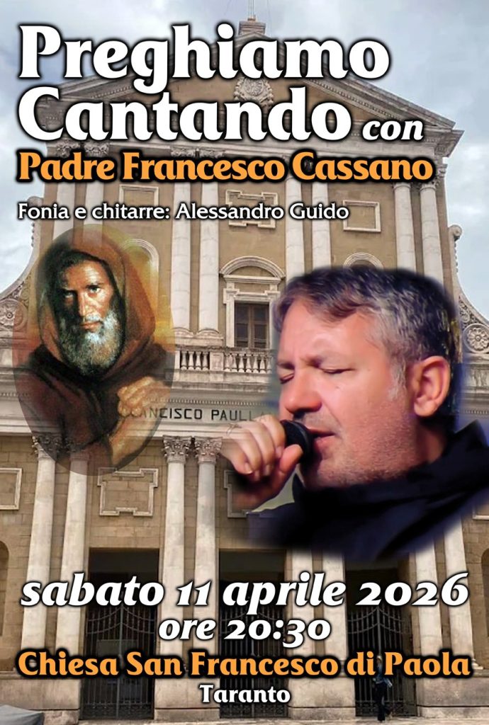 Sabato 11 aprile a Taranto nella chiesa di San Francesco di Paola alle ore 20.30, serata intitolata “Preghiamo cantando”. Si tratta di una iniziativa di preghiera per la pace, come indicato da papa Leone XIV, cui seguirà, con la medesima intenzione, la preghiera in canto a cura del parroco padre Francesco Cassano (fonia e canto di Alessandro Guido).