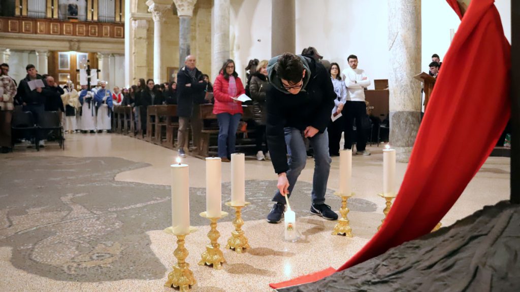 Gli adolescenti e i giovani dell’arcidiocesi di Taranto hanno vissuto un intenso momento di preghiera con la Via Crucis ‘Gente di Primavera’, svoltasi lo scorso 26 marzo e promossa dal Servizio diocesano per la pastorale giovanile e vocazionale in collaborazione con il Centro missionario diocesano. L’iniziativa, pensata come un cammino itinerante per le strade della città vecchia, è stata invece vissuta all’interno della cattedrale di San Cataldo a causa delle condizioni meteo avverse.