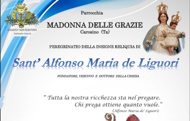 A Carosino la reliquia di Sant’Alfonso Maria de Liguori
