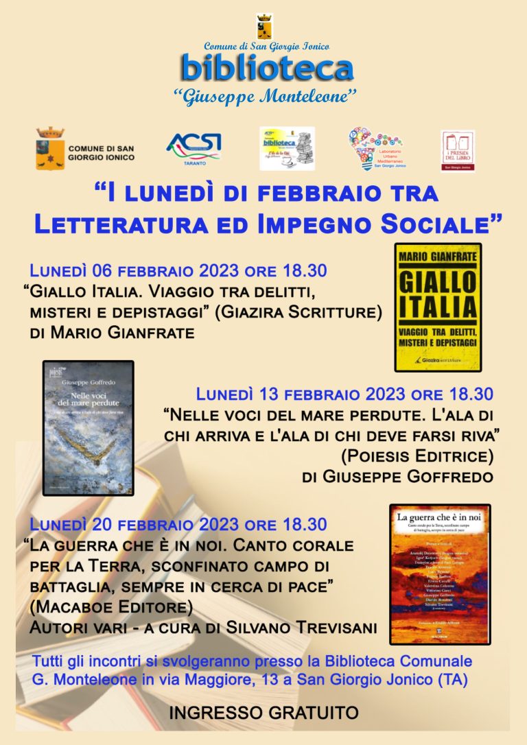 I lunedì alla Biblioteca Monteleone di San Giorgio Jonico: terzo incontro con Letteratura e impegno sociale
