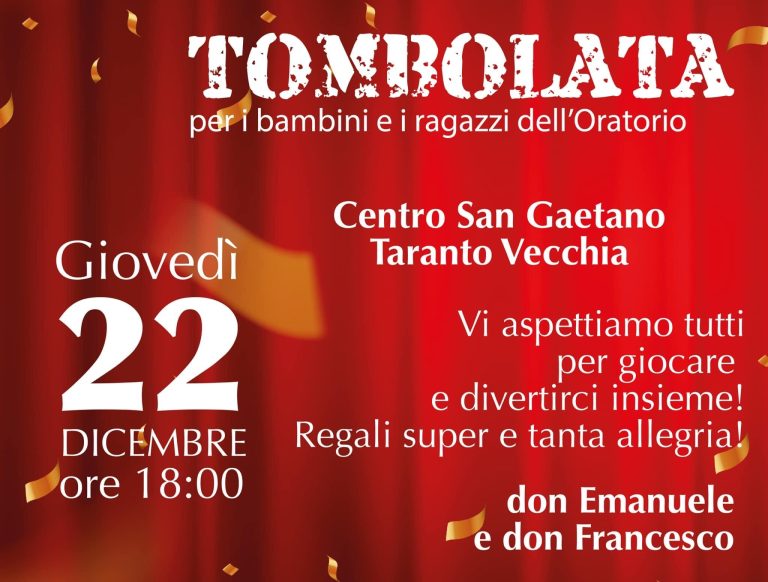 Il 22 dicembre, la grande tombolata con i bambini di Taranto vecchia